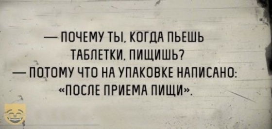 ПОЧЕМУ ТЫ КОГДА ПЬЕШЬ _ ТАБЛЕТКИ ПИЩИШЬ ПОТОМУ ЧТО НА УПАКОВКЕ НАПИСАНО ПОСЛЕ ПРИЕМА ПИЩИ