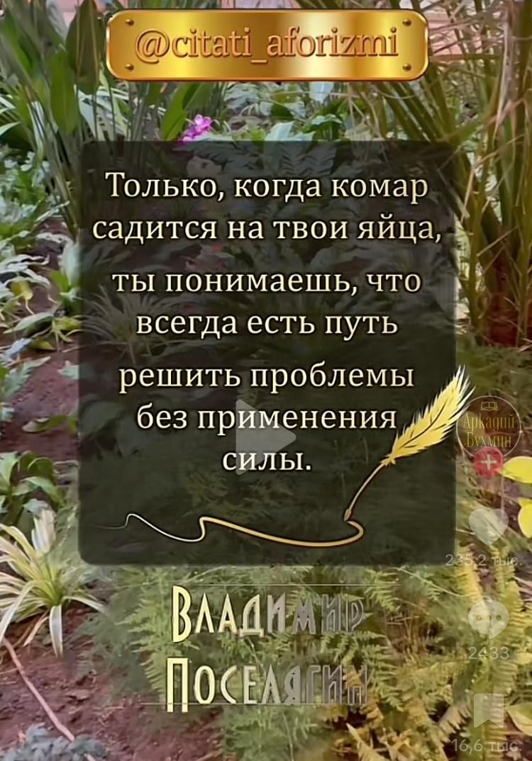 Только, когда комар садится на твои яйца, ты понимаешь, что всегда есть путь решить проблемы без применения силы.