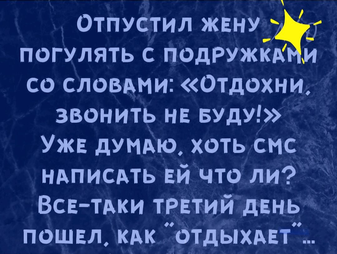Отпустил жвну Ёб погулять с подружйд и со словдми Отдохни звонить нв вуду Ужв душно хоть сис ндписдть ЕЙ что ли ВСЕ ТАКИ трвтий двнь пошвл кдк ошыхдвт