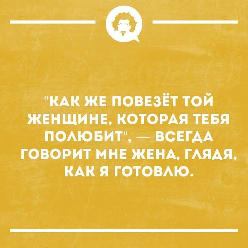 "КАК ЖЕ ПОВЕЗЁТ ТОЙ ЖЕНЩИНЕ, КОТОРАЯ ТЕБЯ ПОЛЮБИТ, — ВСЕГДА ГОВОРИТ МНЕ ЖЕНА, Глядя, как Я ГОТОВЛЮ."