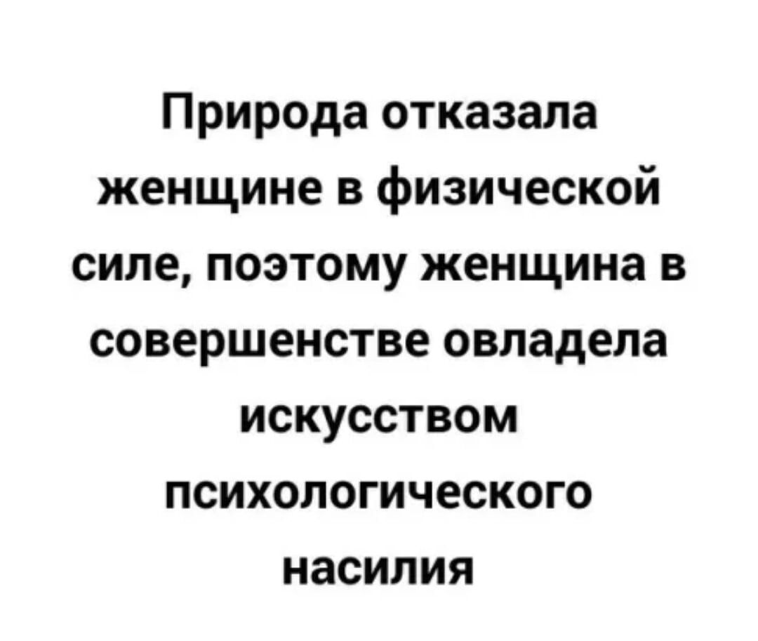 Природа отказала женщине в физической силе поэтому женщина в совершенстве овладела искусством психологического насилия