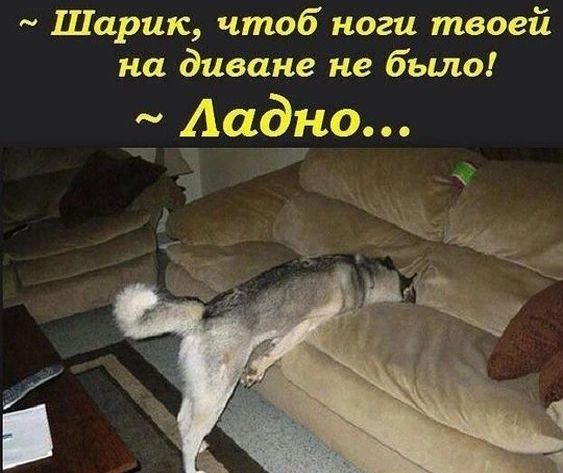 Шарик чтоб ноги твоей на диване не было _ ладно