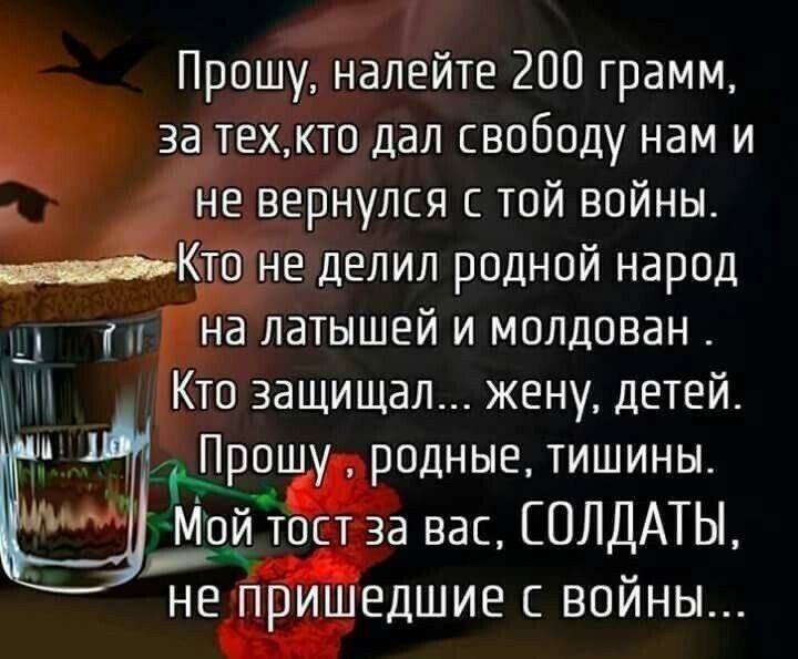 Прошу Налейте 200 грамм за тех кто дал свободу нам и не вернулся с той войны Кчто неЪДелил родной народ