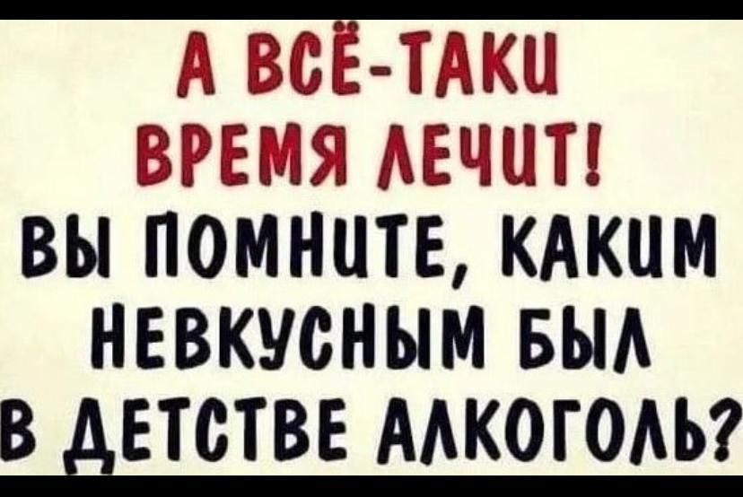 А ВЁСТИ-ТАКИ ВРЕМЯ ЛЕТИТ! ВЫ ПОМНИТЕ, КАКИМ НЕВКУСНЫМ БЫЛ В ДЕТСТВЕ АЛКОГОЛЬ?