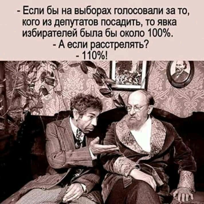 Если бы на выборах голосовали за то кого из депутатов посадить то явка избирателей была бы около 100 А если расстрелять 110