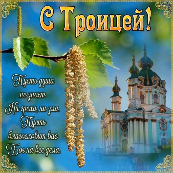 С Троицей! Пусть душа не знает Ни греха, ни зла. Пусть благословит вас Бог на все дела.