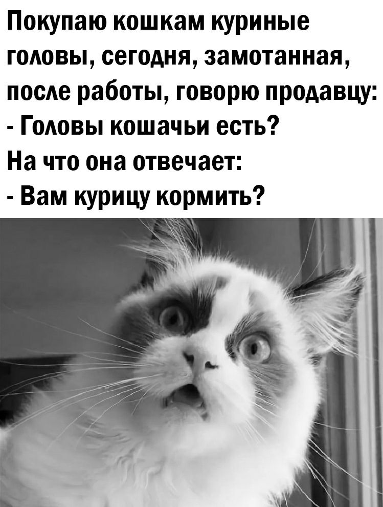 Покупаю кошкам куриные ГОАОВЫ сегодня замотанная после работы говорю продавцу ГОАОВЫ кошачьи есть На что она отвечает Вам курицу кормить