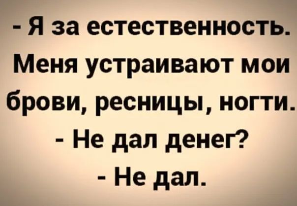 Я за естественность Меня устраивают мои брови ресницы ногти Не дал денег Не дал