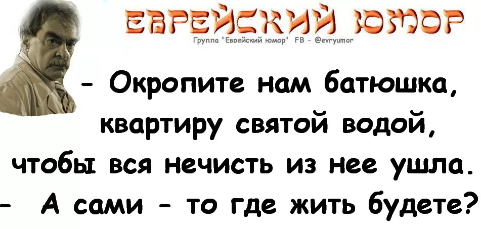 ЕВРЕЙСКИЙ шта Группа Ешкий юмор гв еугуптщ Окропите нам батюшка квартиру святой водой чтобы вся нечисть из нее ушла А сами то где жить будете