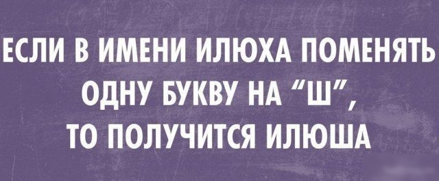 ЕСЛИ В ИМЕНИ ИЛЮХА ПОМЕНЯТЬ ОДНУ БУКВУ НА Ш ТО ПОЛУЧИТСЯ ИЛЮША