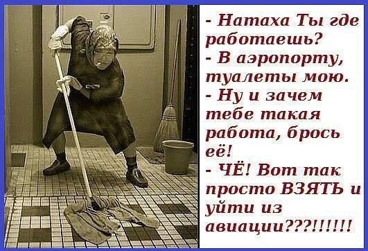 Натаха Ты где работаешь В аэропорту туалеты мою Ну и зачем тебе такая работа брось её ЧЁ Вот так просто ВЗЯТЬ и __д уйти из авиации