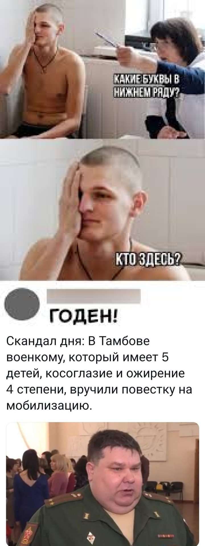 Скандал дня В Тамбове военкому который имеет 5 детей косоглазие и ожирение 4 степени вручили повестку на мобилизацию