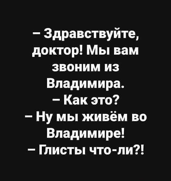 Здравствуйте доктор Мы вам звоним из Владимира Как это Ну мы живём во Владимире Глисты чтопи