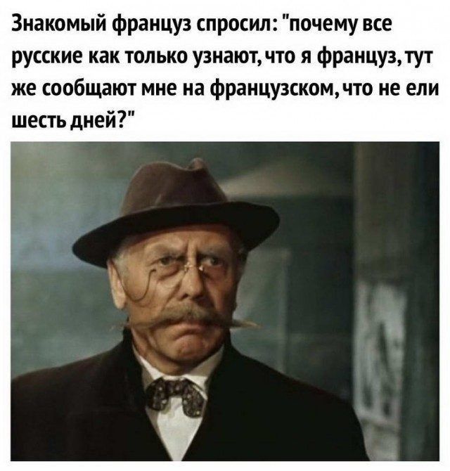 Знакомый француз спросил почему все русские как только узнают по я француздут же сообщают мне на французскомжто не ели шесть дней