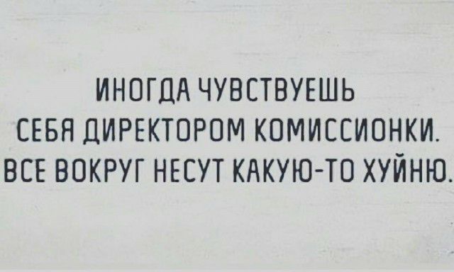 ИНОГДА ЧУВСТВУЕШЬ СЕБЯ ДИРЕКТОРОМ КОМИССИОНКИ ВСЕ ВОКРУГ НЕСУТ КАКУЮ ТО ХУЙНЮ