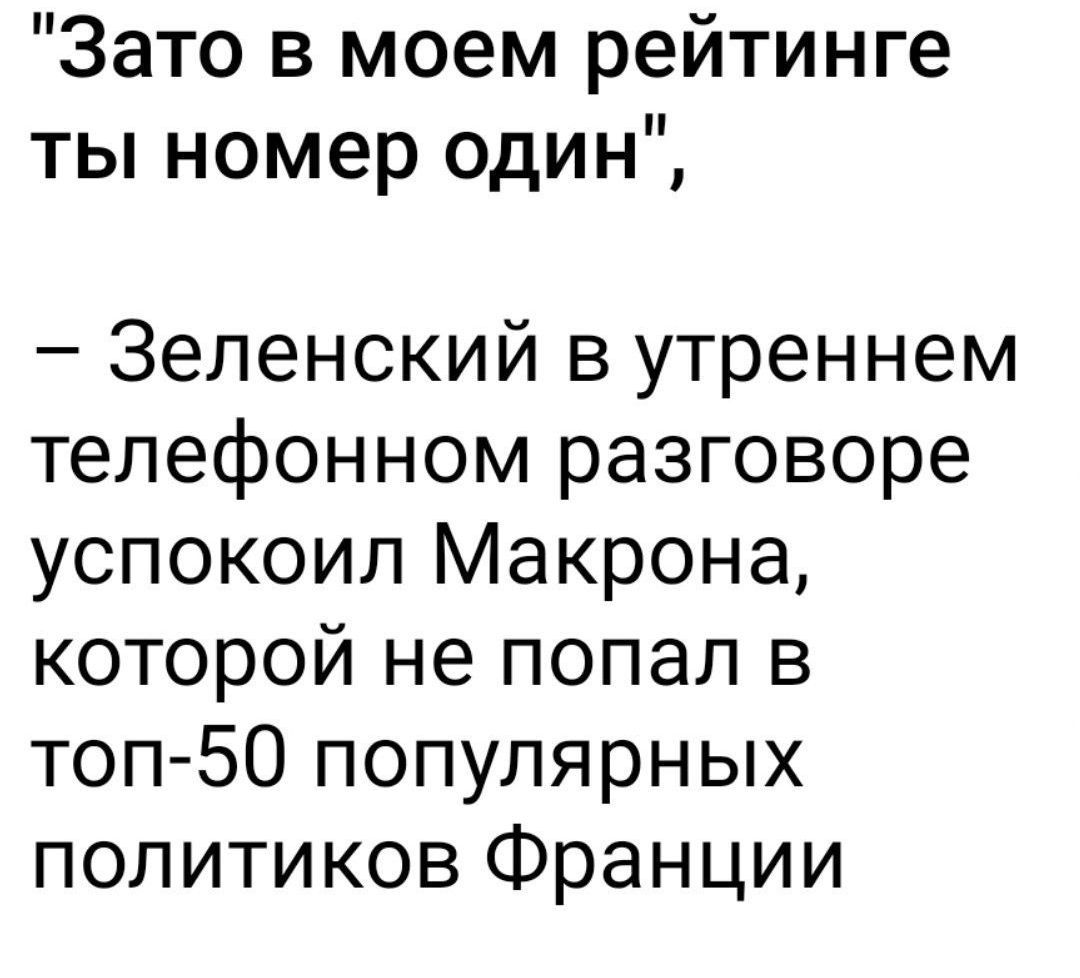 "Зато в моем рейтинге ты номер один", – Зеленский в утреннем телефонном разговоре успокоил Макрона, который не попал в топ-50 популярных политиков Франции.