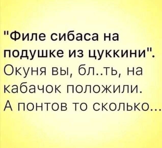 "Филе сибаса на подушке из цуккини". Окуня вы, блять, на кабачок положили. А понтов то сколько...