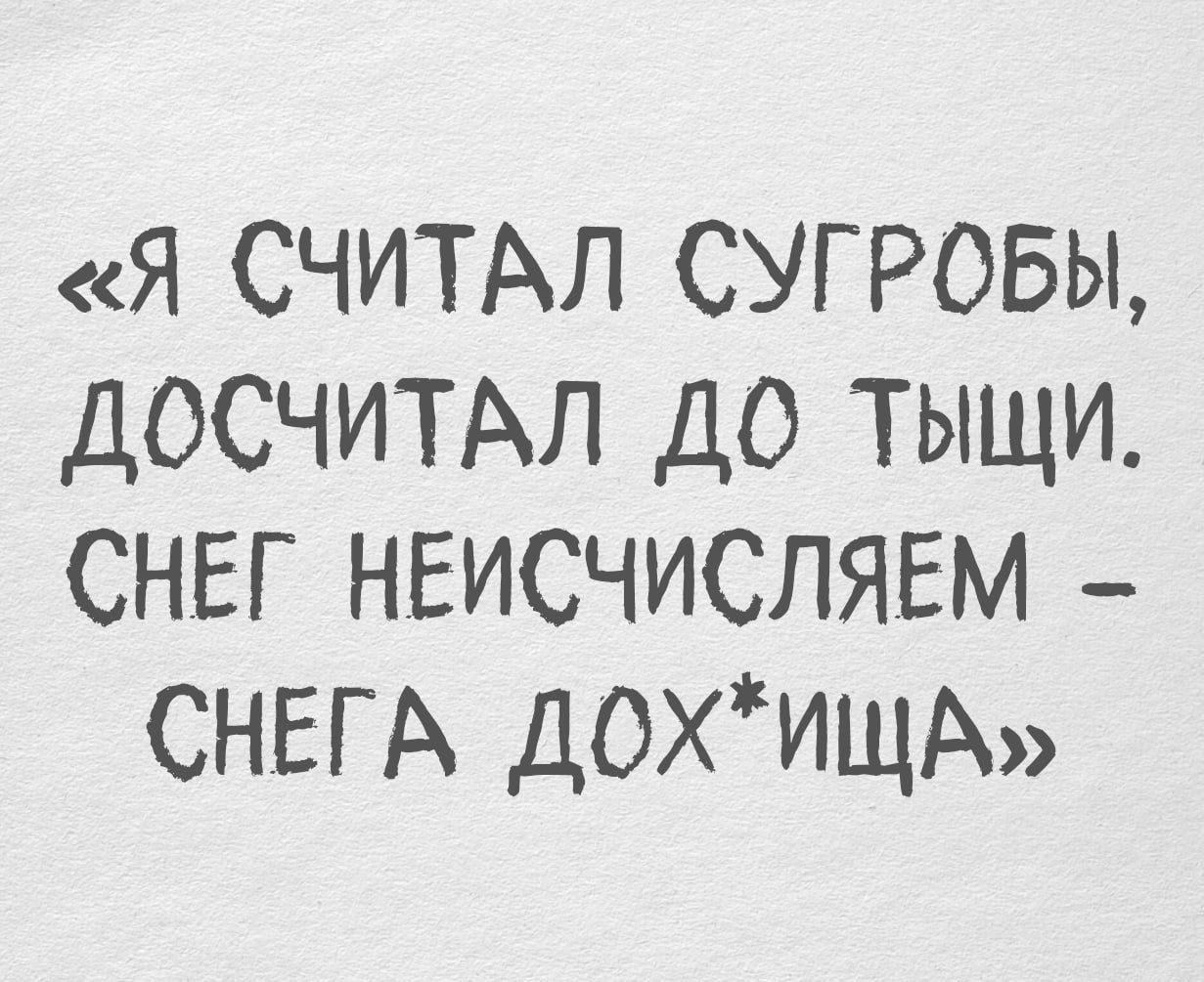 "Я считал сугробы, досчитал до тыщи. Снег неисчисляем — снега дох*ища"