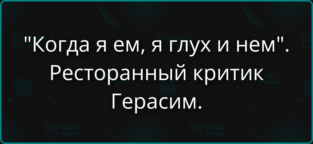 "Когда я ем, я глух и нем". Ресторанный критик Герасим.